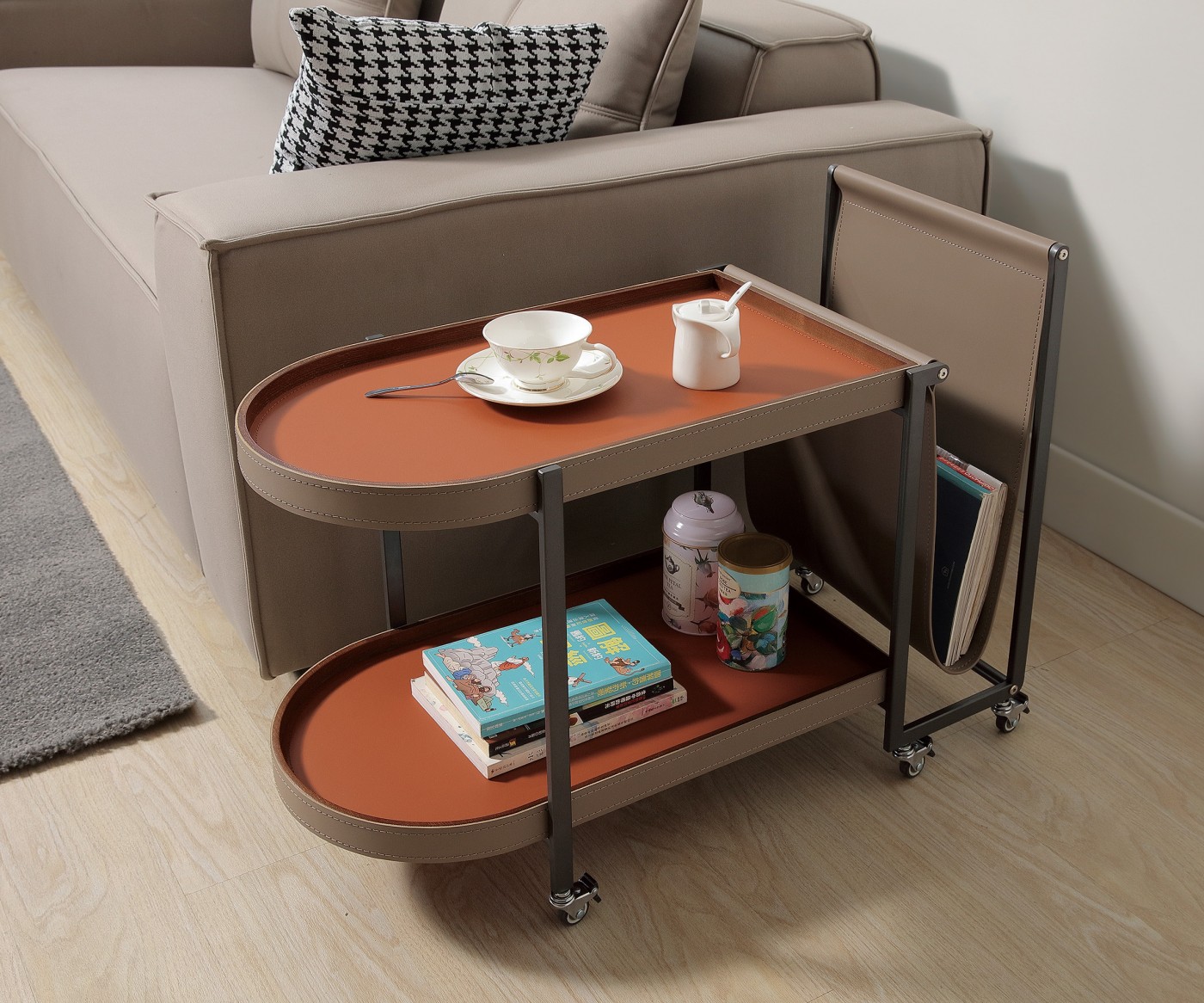 A329-07 馬鞍皮推車茶几