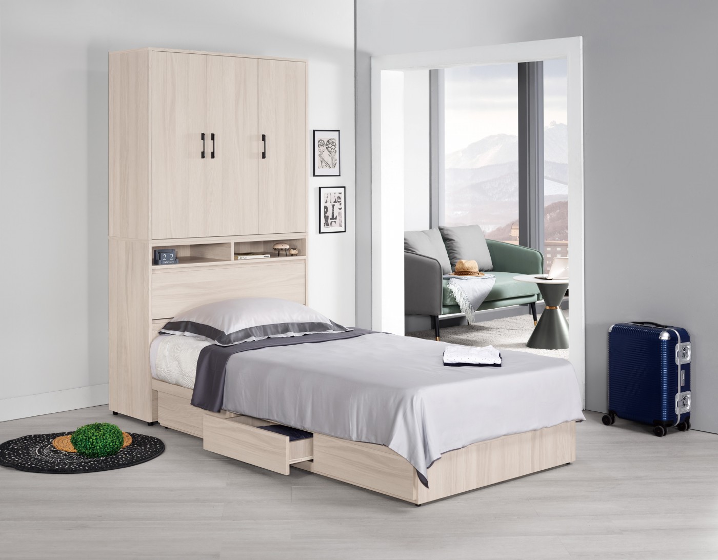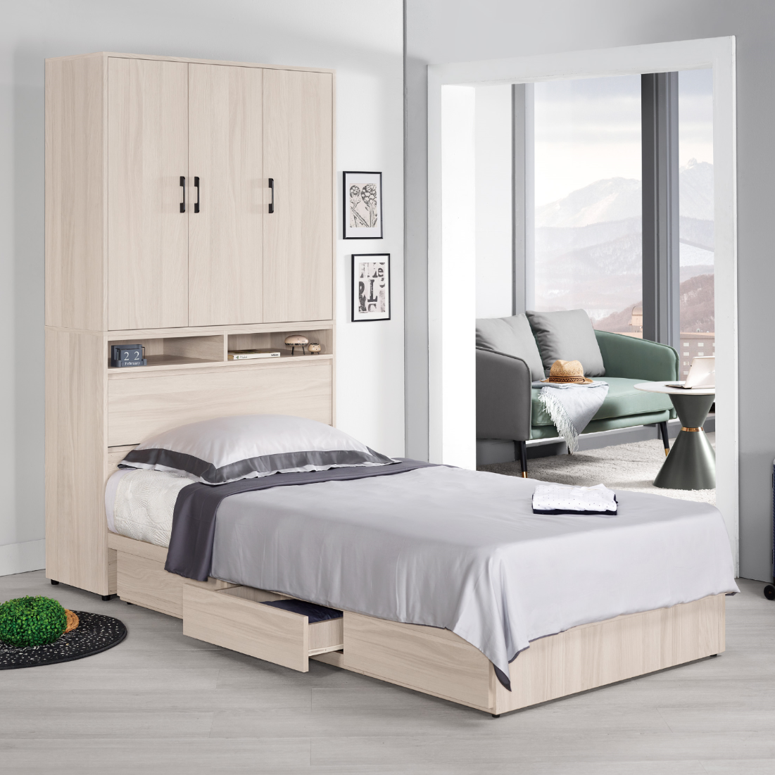 -衣櫃式床頭 寬106 x 深40 x 高197 cm