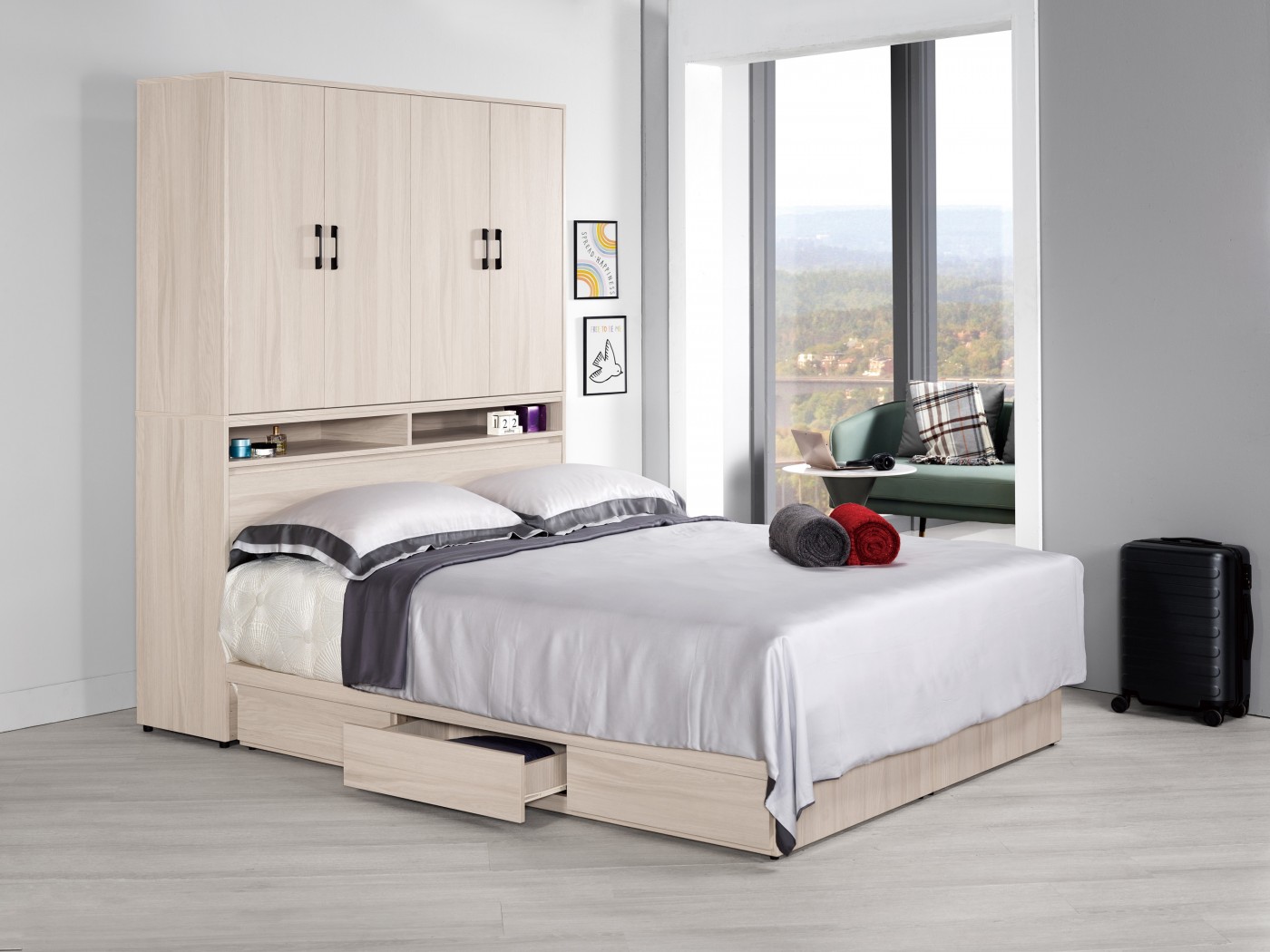 -衣櫃式床頭 寬151.5 x 深40 x 高197 cm